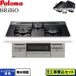 【工事費込セット(商品+基本工事)】 パロマ Brillio ブリリオ ビルトインコンロ オーブン接続対応 幅75cm クリアパールブラック ラ・クックグラン付属 【プロパンガス】 ≪PD-743WS-75CK-LPG≫