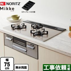ノーリツ Mikke ミッケ オートタイプ ビルトインコンロ 幅75cm ムーンシルバーガラストップ ロティプレートS付属 【都市ガス】 ≪N3WV7RWAP2SIC-13A≫