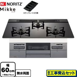 【工事費込セット(商品+基本工事)】 ノーリツ Mikke ミッケ オートタイプ ビルトインコンロ 幅60cm ブラックガラストップ ロティプレートS付属 【都市ガス】 ≪N3WV6RWAP1SIC-13A≫