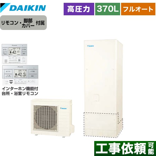 | 仕様・ 特徴 | お湯はりから保温、自動たし湯まですべておまかせ全自動タイプ。 給湯タイプ:フルオートタイプ 370L(3~5人用) 高圧 一般地仕様 タンク形状:角型 ウルトラファインバブル入浴※別売のウルトラファインバブルアダプターが必要です。 2025年度省エネ基準達成 ツイン給湯 |