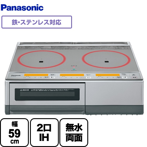 | 仕様・ 特徴 | 2口IH 鉄・ステンレス対応 幅59cm 無水両面焼きグリル IHヒーター IHコンロ IH調理器 お手入れ簡単なグリル採用:庫内の側面・底面が拭ける 明るさが変わる光るリング。 使いやすいフル天面操作。 グリル皿タイプの両面焼きグリル 本体正面色:シルバー 火力調節:左右IH10段階 天面操作部:プッシュ式 表示:オレンジバックライト液晶 光火力センサー:2個 コード・長さ:3心EPゴムキャブタイヤケーブル 0.7m 電源プラグ:2極・接地極付 20A 250V 推奨コンセント:埋込型WN1932 露出型 WKS294 |