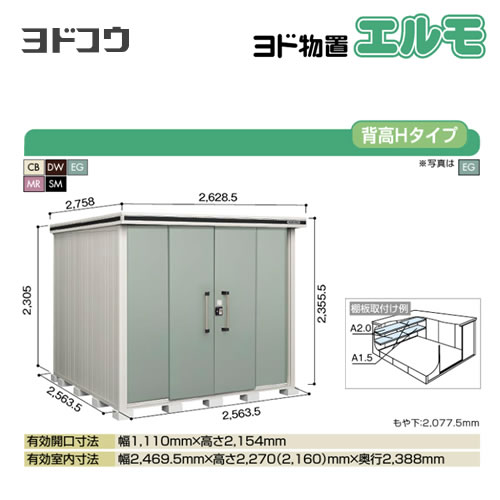 【大型重量品につき特別配送】【代引不可】 ヨドコウ 物置 ヨド物置 エルモ 屋根タイプ:背高Hタイプ 耐荷重タイプ:積雪型 扉タイプ:引き分け戸 【送料無料】【法人名必須】【個人宅様配送不可】≪LMDS-2525H≫
