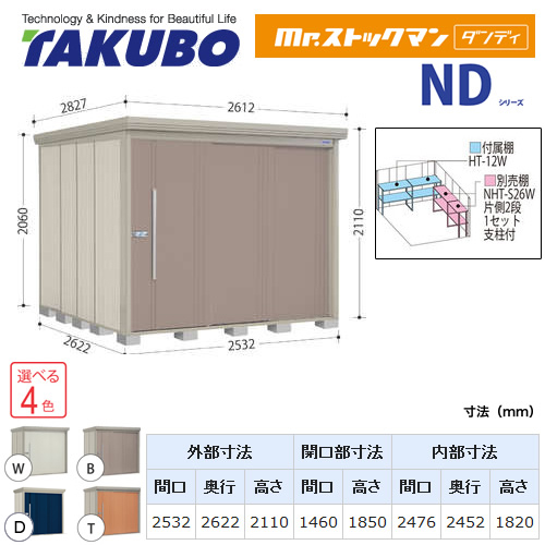 【大型重量品につき特別配送】【代引不可】 タクボ 物置 Mr.ストックマン ダンディ NDシリーズ 背面棚タイプ 屋根タイプ:標準型 耐荷重タイプ:一般型 【送料無料】 ≪ND-2526≫
